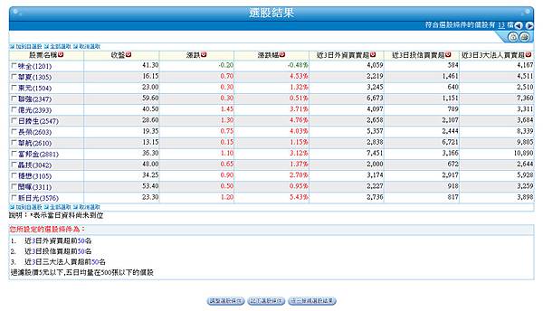 1. 想要選出同時有外資、投信、法人加持的股票的話,可能就要再多花一點時間。